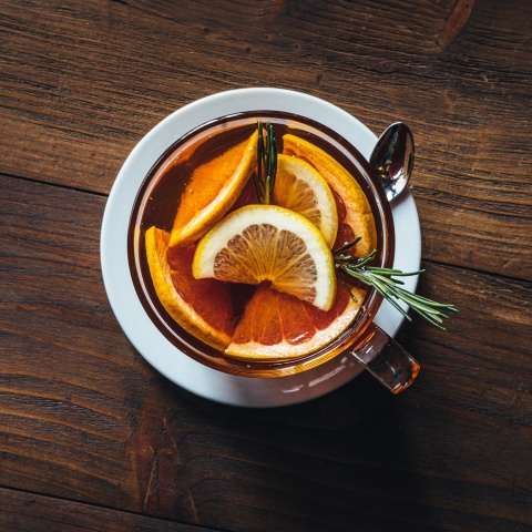 Herbata zimowa rozmaryn, grejpfrut, miód, czerwony pieprz, cytryna, syrop żurawinowy 21 zł